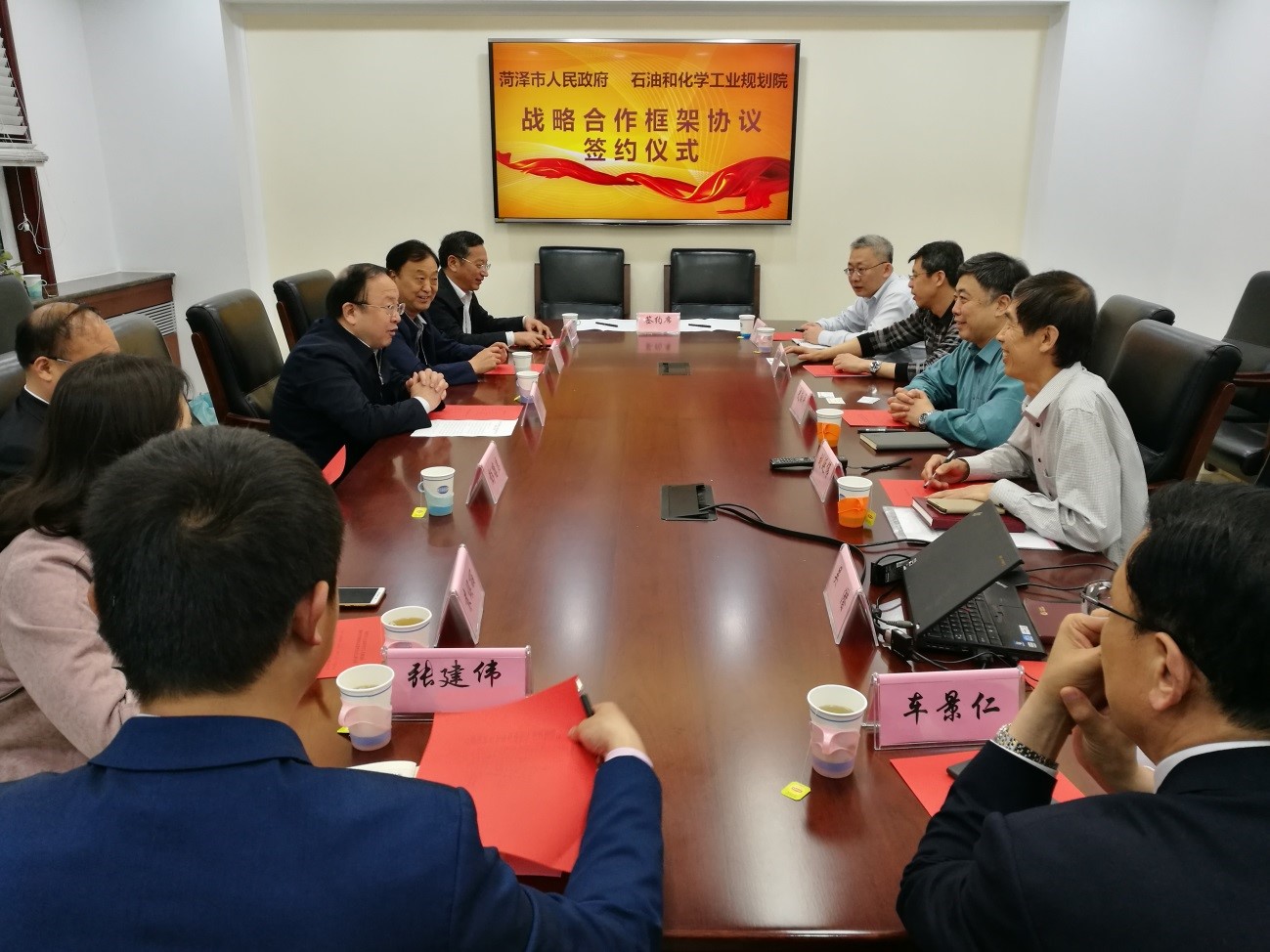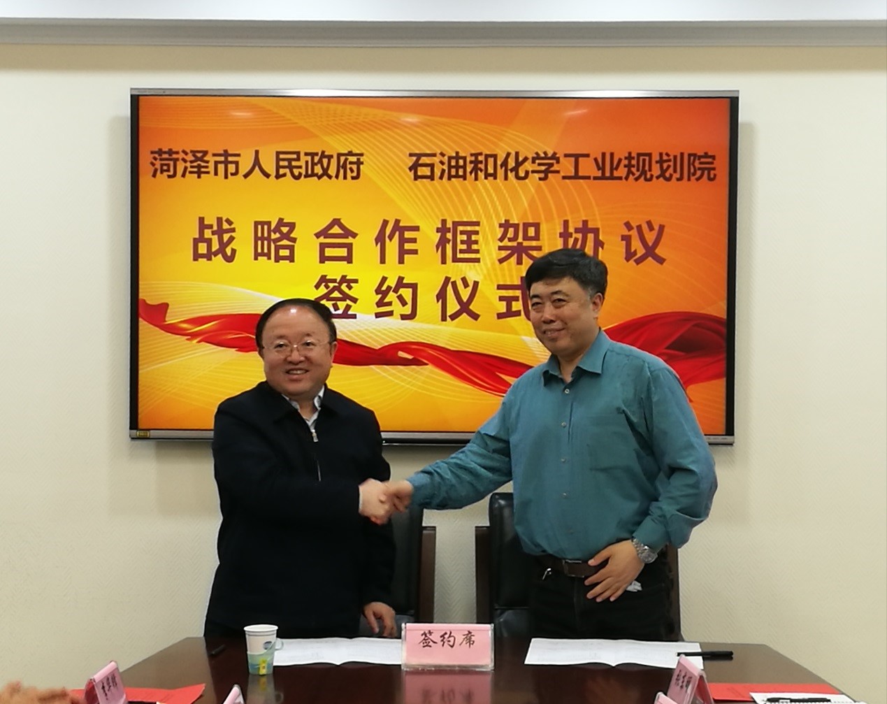 4月21日,石油和化学工业规划院与菏泽市人民政府战略合作框架协议签约仪式在我院举行。我院出席签约仪式的有史献平副院长、刘延伟副总工程师、李家伟主任以及石化处的张东明和吴潜。菏泽市出席签约仪式的有曹升灵副市长、经信委闫凌主任、科技局彭德启局长以及经信委李华峰副主任、袁焕丽科长和张建伟副科长。