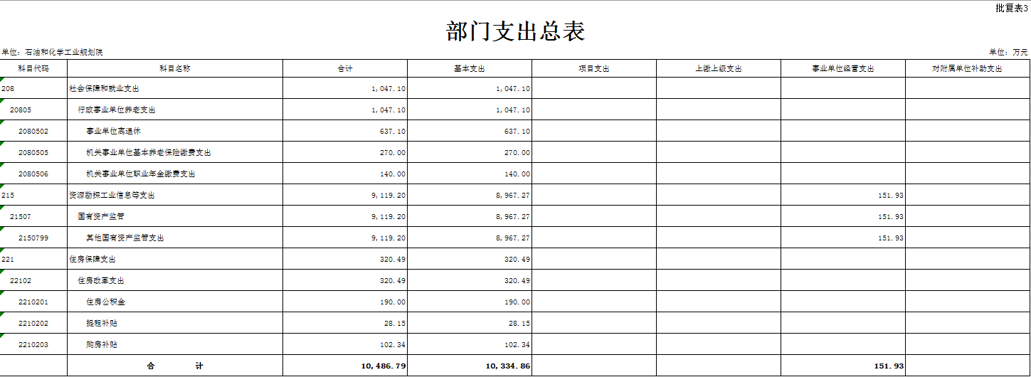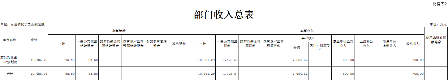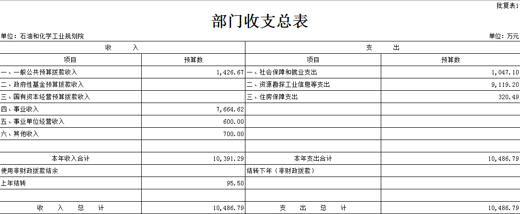 收入包括:一般公共预算拨款收入、事业收入、事业单位经营收入、其他收入、上年结转;支出包括:社会保障和就业支出、资源勘探工业信息等支出、住房保障支出。2023年部门收支总预算10486.79万元。