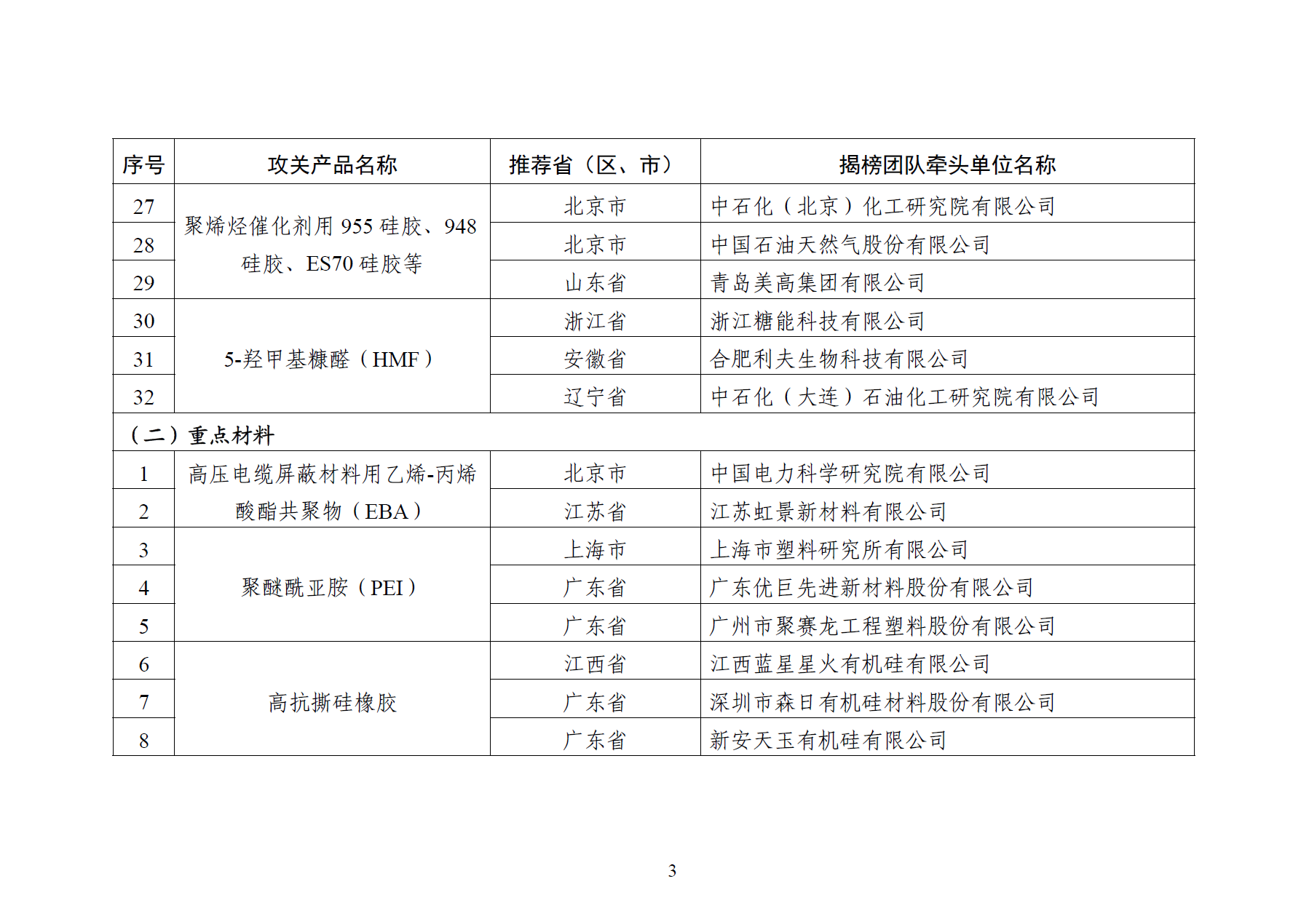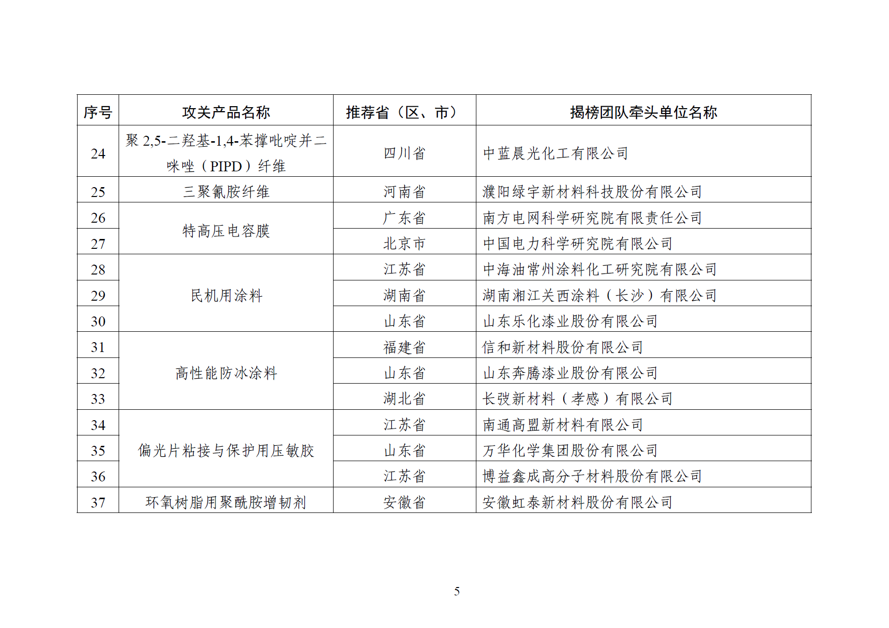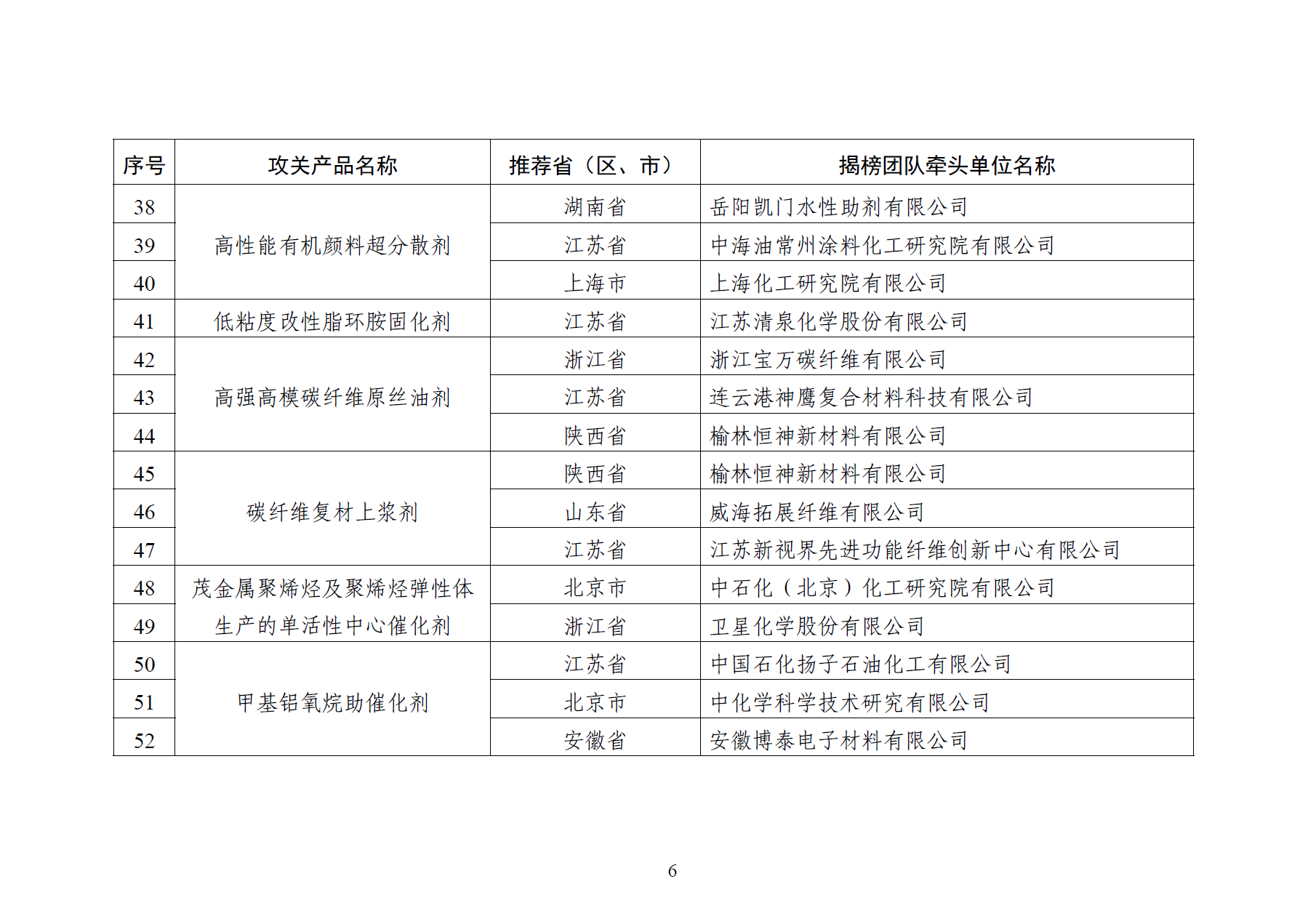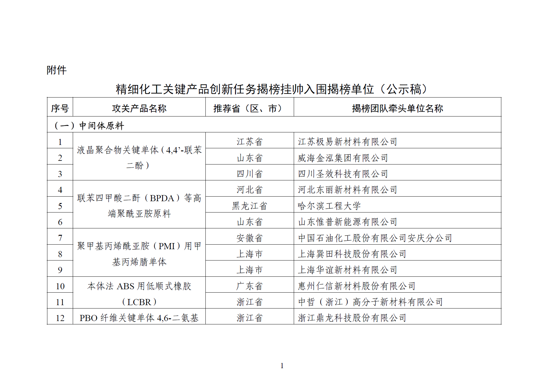 > 工信部发布《精细化工关键产品创新任务揭榜挂帅入围揭榜单位》